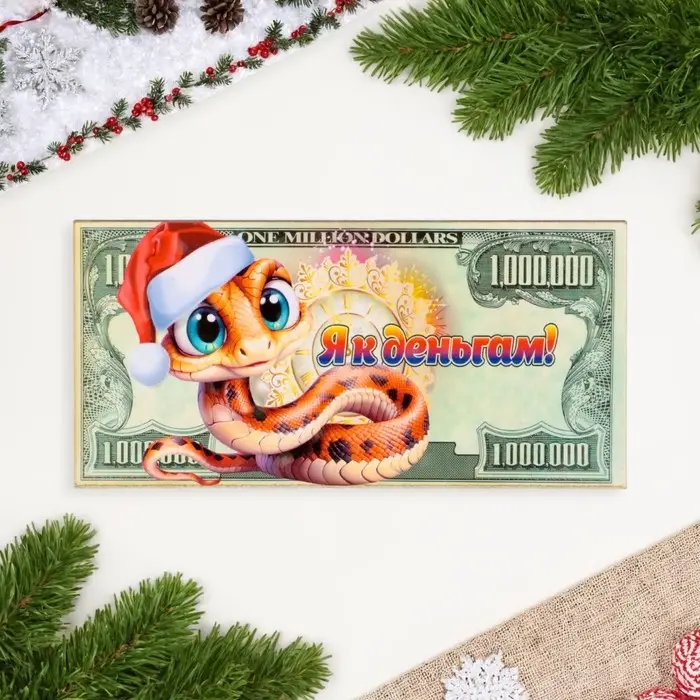 Магнит на холодильник «Купюра. Змея новогодняя. Я к деньгам»,