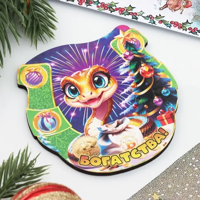 Магнит новогодний подкова "Символ года 2025. Богатства"