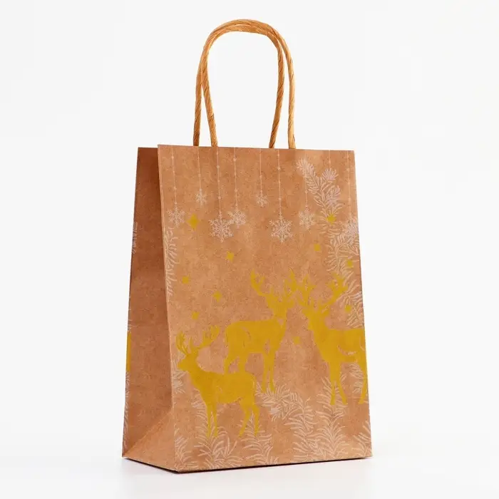 Пакет крафт новогодний 15 × 21 × 8 см - это стильное и функциональное решение для упаковки и транспортировки подарков в преддверии зимних праздников.