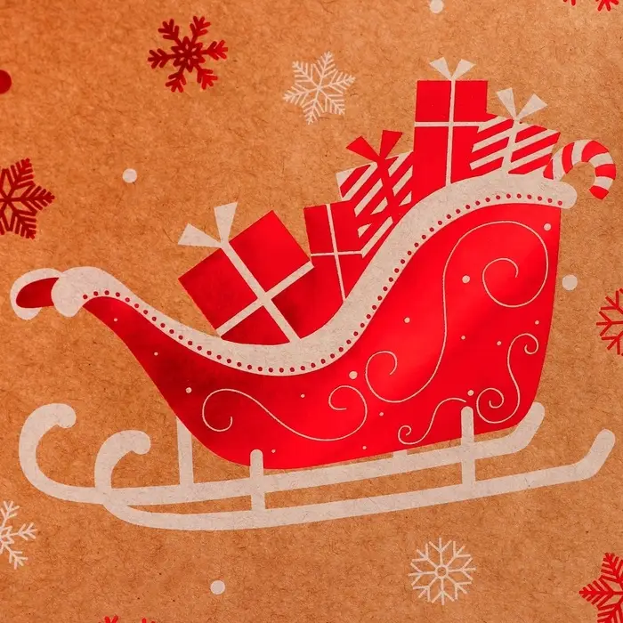 Пакет крафт с тиснением, круглая ручка, «Новогдние сани» 15×21×8 см, 120 г