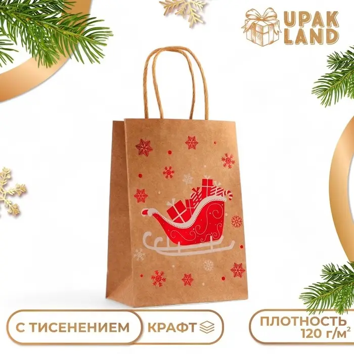 Пакет крафт новогодний 15 × 21 × 8 см - это стильное и функциональное решение для упаковки и транспортировки подарков в преддверии зимних праздников.