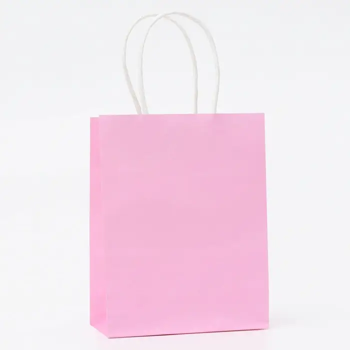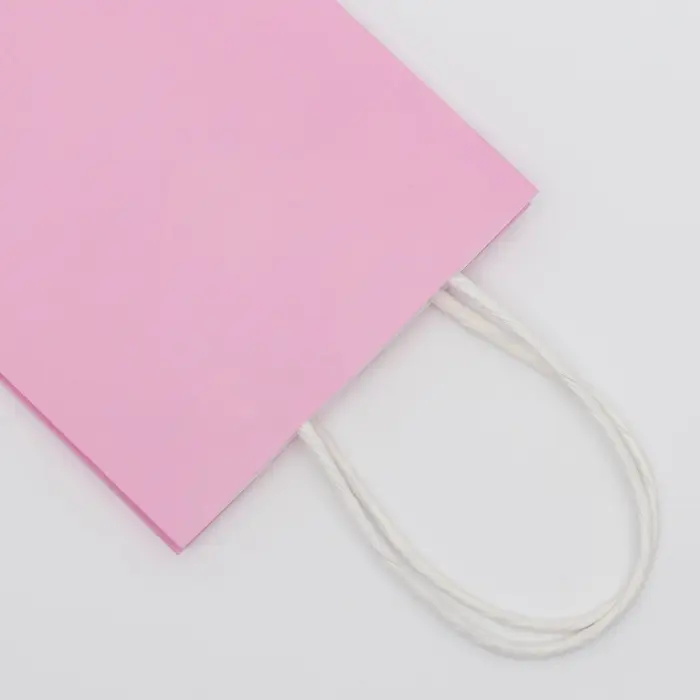 Пакет крафт розовый, круглая ручка, 15×12×6 см, 120 г