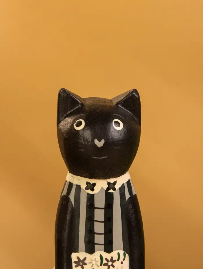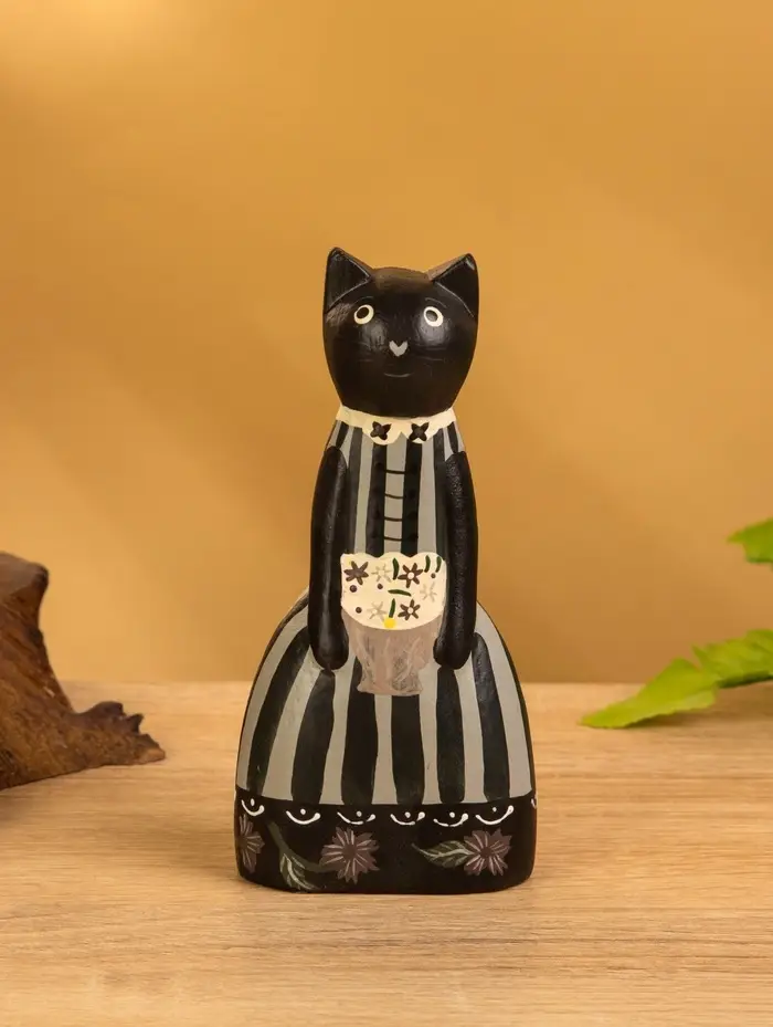 Сувенир дерево "Чёрная кошка в зелёном платье" 6х4х13 см