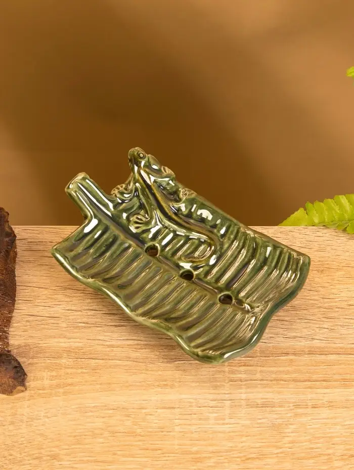 Мыльница «Геккон», 13×8×3.5 см, керамика, зелёная