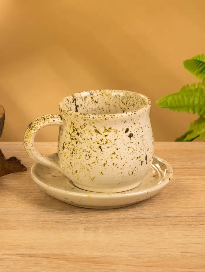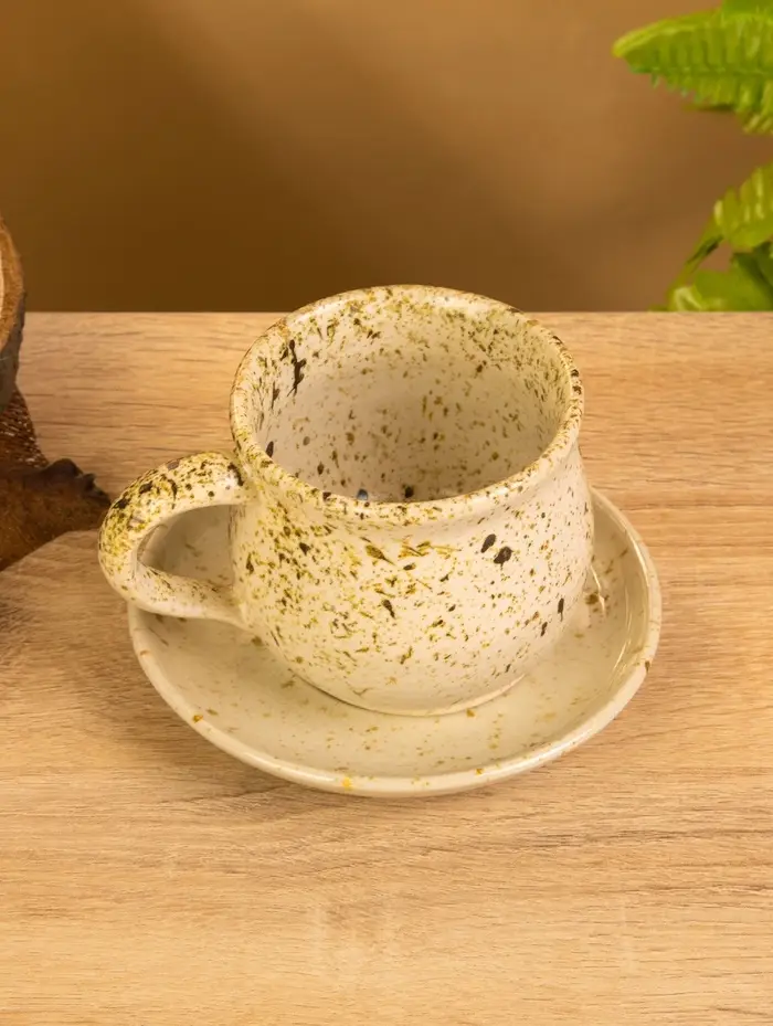 Чашка с блюдцем "Камень 1" керамика, цв. бежевый в крошку, 13х13х9 см