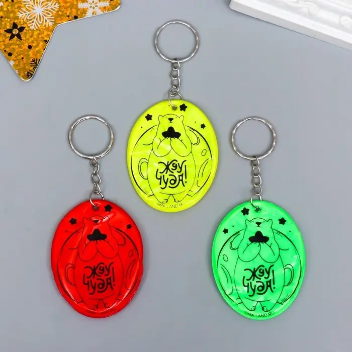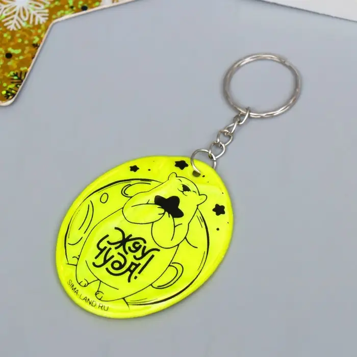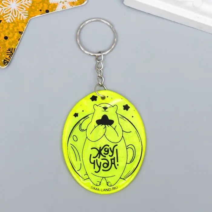 Брелок пластик светоотражающий "Мишка - Жду чуда!" МИКС 5,7х4,5 см