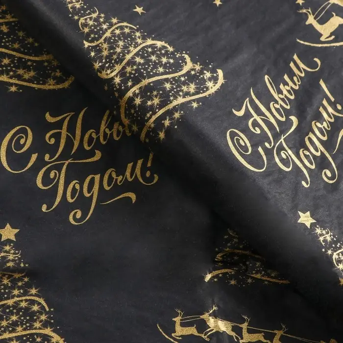 Бумага упаковочная тишью, новогодняя упаковка «Золото НГ»,50×66 см