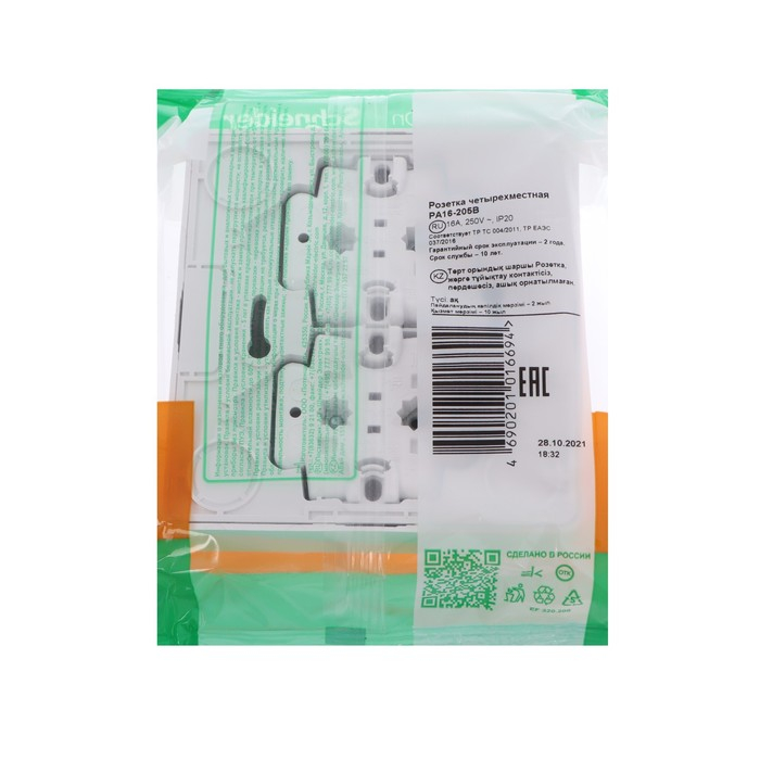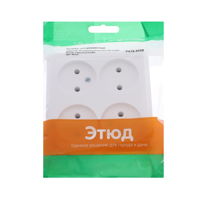 Четырёхместная розетка Schneider Electric "Этюд" без шторок и заземления предназначена для применения в сетях до 250 В (~), с силой тока до 16 А. Четырёхместная розетка позволяет подключить четыре устройства в одном месте. Она проста в установке и удобна в применении.