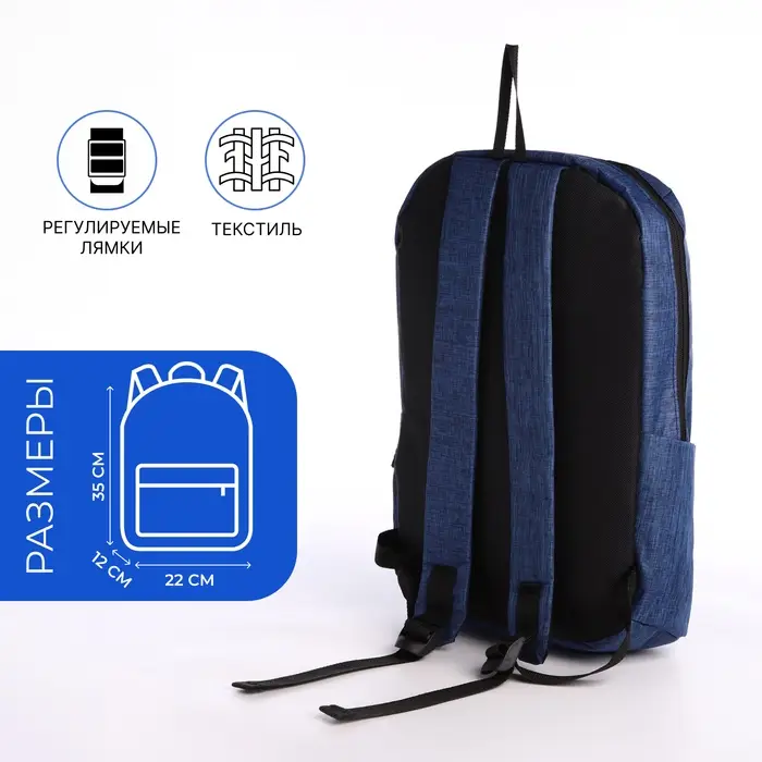 Рюкзак молодёжный на молнии, водонепроницаемый, 3 наружных кармана, цвет синий