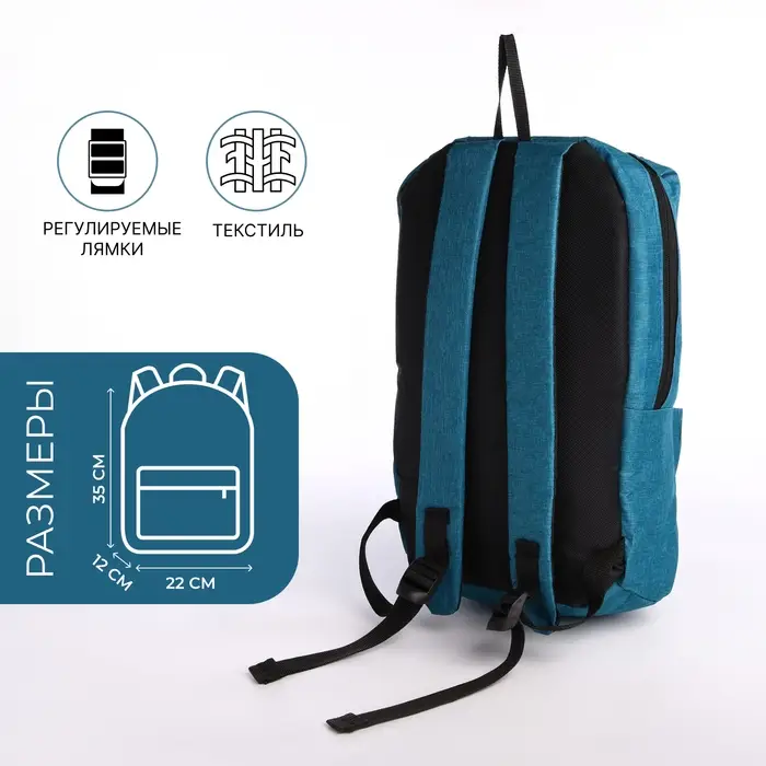 Рюкзак молодёжный на молнии, водонепроницаемый, 3 наружных кармана, цвет бирюзовый