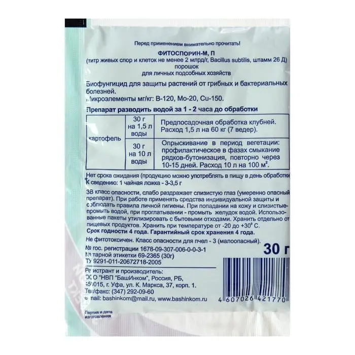 БИО фунгицид "Фитоспорин-М", от бактериальных и грибных болезней картофеля,30 г