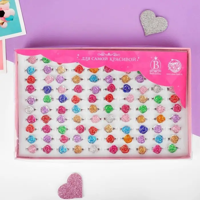 Кольцо детское «Выбражулька» ассорти для девочек, форма МИКС, цвет МИКС, безразмерное