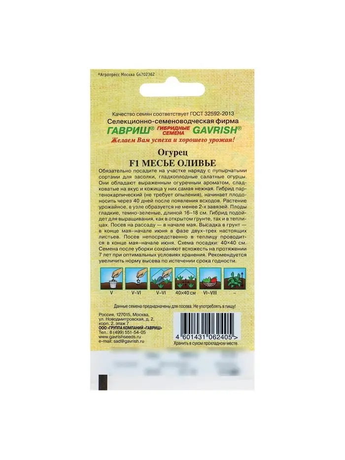 Семена Огурец "Месье Оливье" салатный F1, партенокарпический, 10 шт.