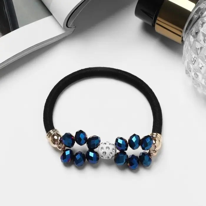 Резинка для волос "Хрустальная" синие камни