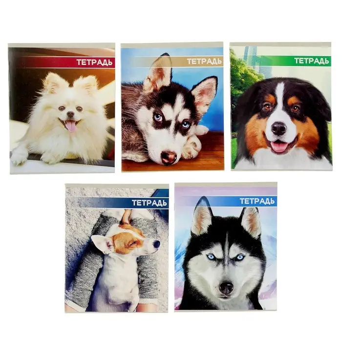 Комплект тетрадей из 5 штук, 48 листов в клетку Calligrata "Любимые питомцы", обложка мелованная бумага, блок №2, белизна 75% (серые листы)