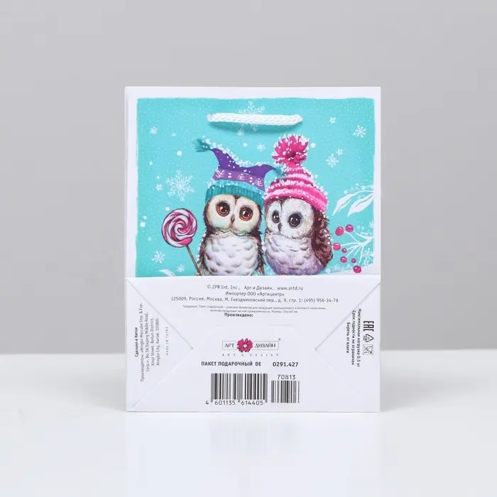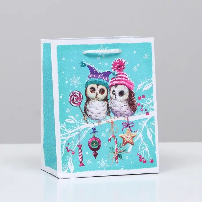 Пакет подарочный "Совы на ветке", 11,5 х 14,5 х 6,5 см