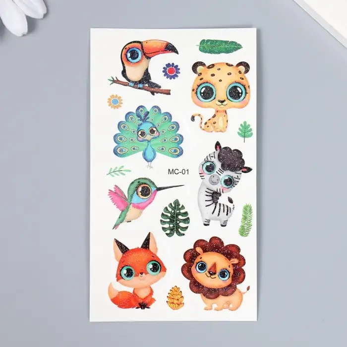 Татуировка на тело цветная "Глазастые зверята" 12х7,5 см
