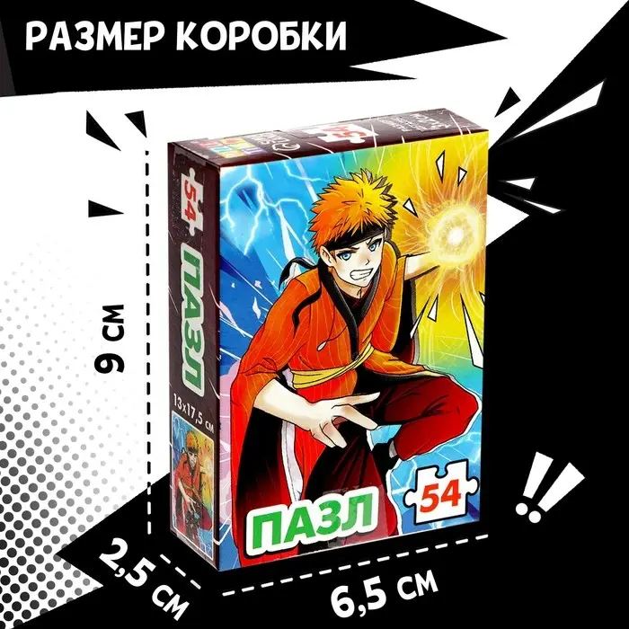Ребёнок соберёт все 54 детали в одно целое и получит красочную картинку размером 17,5 × 13 см.