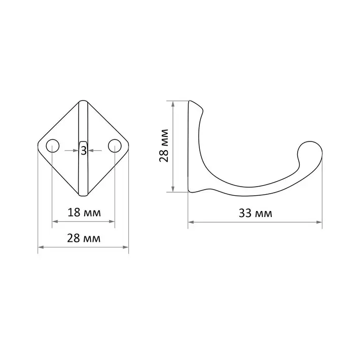 Крючок мебельный ТУНДРА TKO025, однорожковый, бронза, 25 шт