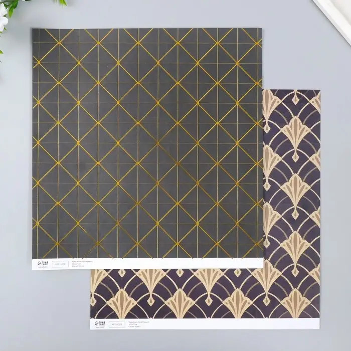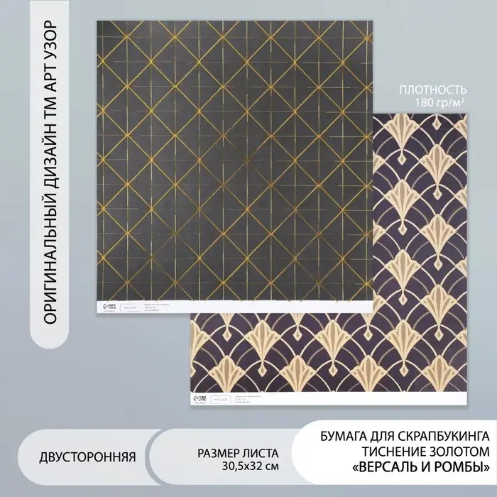 Бумага для скрапбукинга двусторонняя "Версаль и ромбы золото" плотность 180 гр 30,5х32 см
