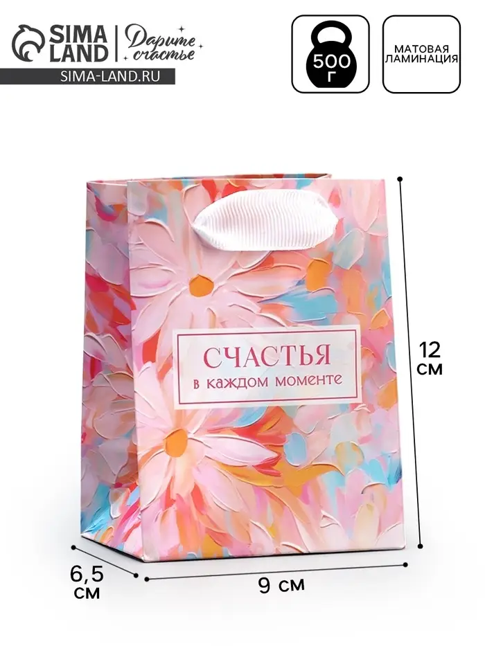Пакет подарочный ламинированный, упаковка, «Счастья», 9 х 12 х 6.5 см