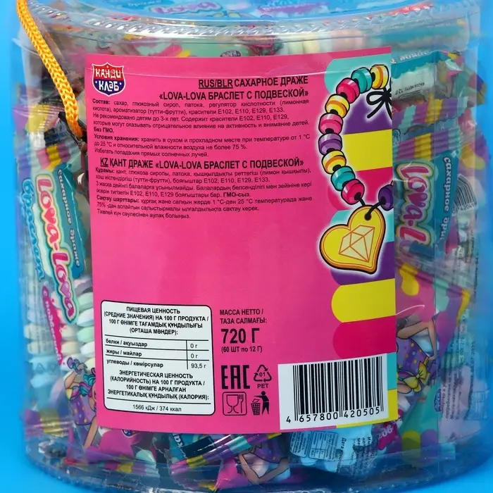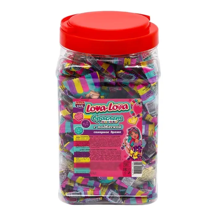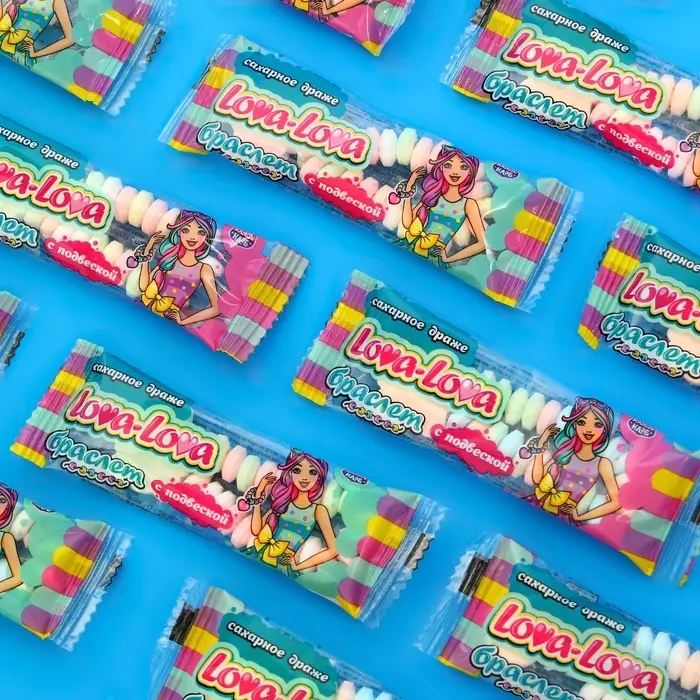 Сахарное драже " Lova-Lova" в виде браслета c подвеской" - это оригинальный сладкий подарок для мальчиков и девочек! С этими конфетами вы погрузитесь в захватывающее путешествие по разнообразным вкусам и ароматам, которые точно разнообразят вашу повседневность. Такой десерт в индивидуальной упаковке с ярким дизайном можно взять с собой на прогулку, в поездку, путешествие, в детский сад или школу. Такое угощение придется по вкусу любому сладкоежке! Прекрасный подарок детям на любой праздник.