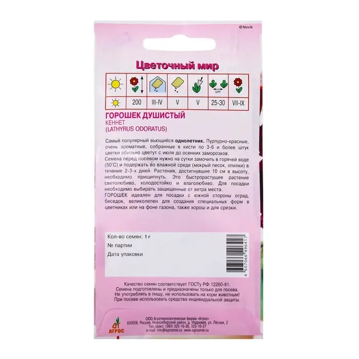 Семена имеют агрономический срок годности до трех лет, что позволяет запасаться ими впрок. Растение относится к кустовым видам, поэтому горошек будет радовать своими цветами даже в небольших по размеру клумбах и цветниках.
