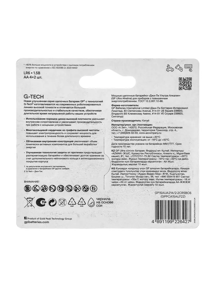 Батарейка алкалиновая GP Ultra, AA, LR6-6BL, 1.5 В, технология G-Tech, блистер, 6 шт.