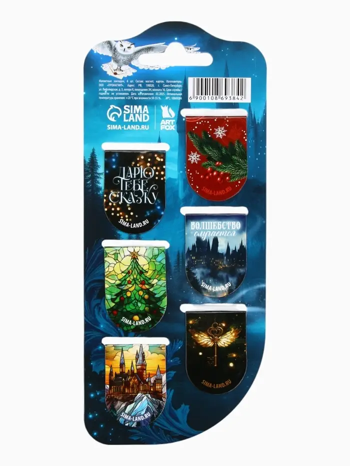 Закладки магнитные на подложке "Волшебно", 6 шт