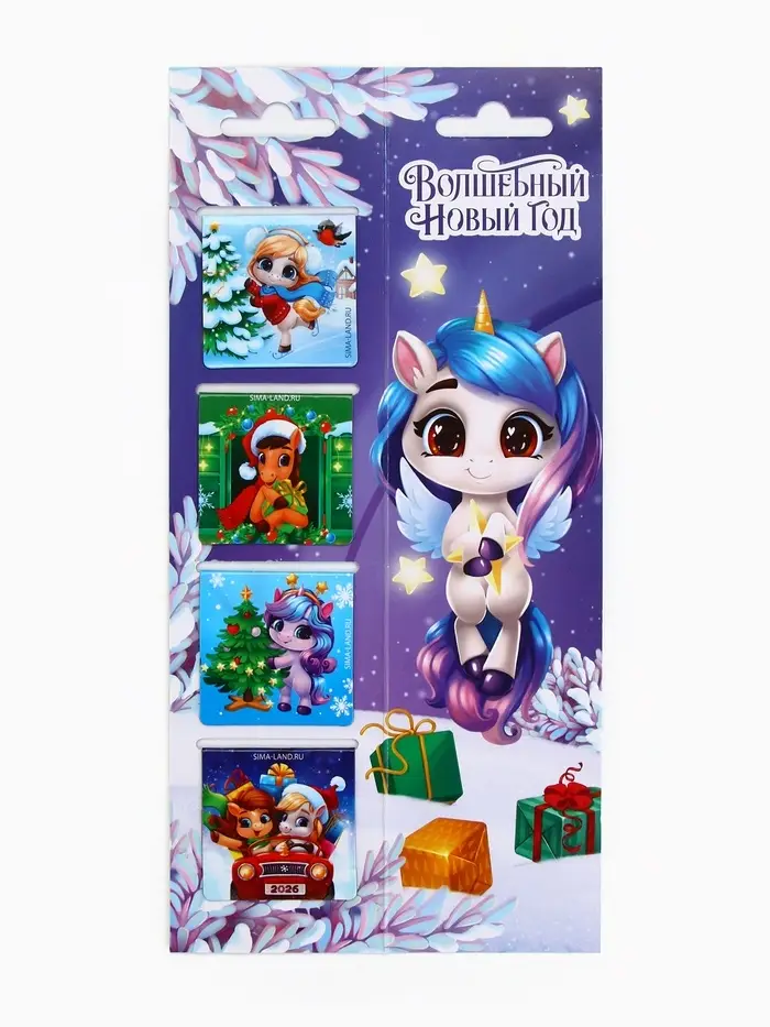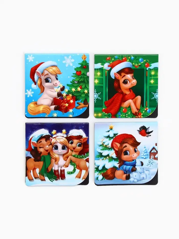 Магнитные закладки "Лошадка", на открытке, 4 шт