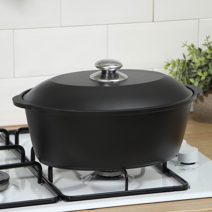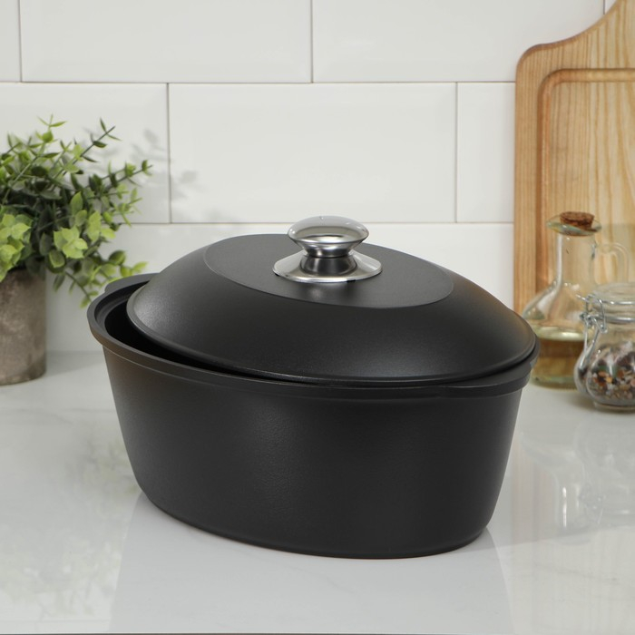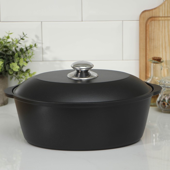 Утятница «Традиция», 4 л, алюминиевая крышка, антипригарное покрытие, цвет чёрный