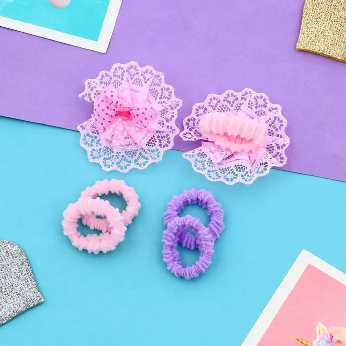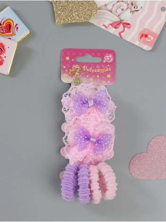 Резинка для волос «Кружево», банты, набор 6 шт., розово-сиреневая