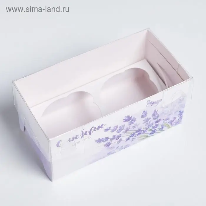Коробка для капкейков, кондитерская упаковка, 2 ячейки «С Любовью для тебя», 16 х 8 х 7.5 см