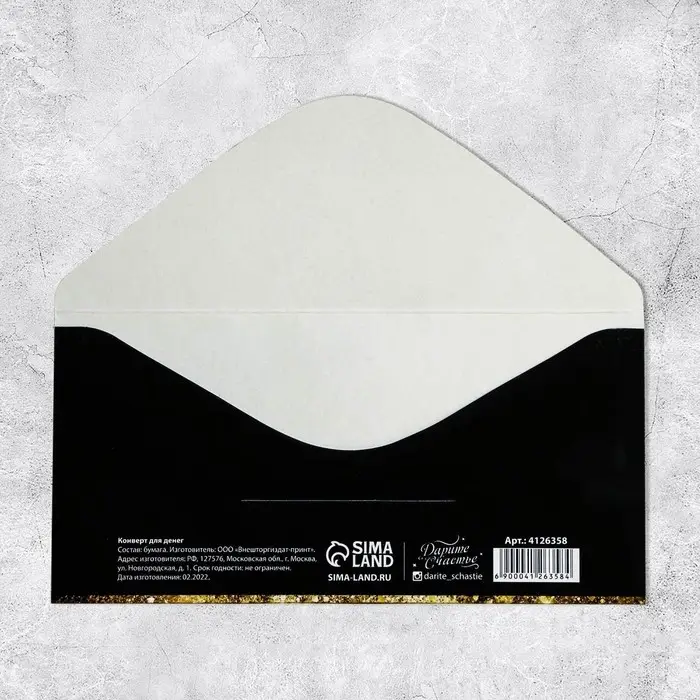 Конверт для денег «С Днём рождения!», золотые звёзды, 16.5 × 8 см