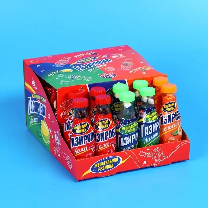 Мини жевательная резинка в бутылочках, ассорти, 7 г
