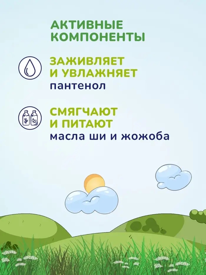 Мягкая формула на основе натуральных масел деликатно очищает и эффективно ухаживает за особо восприимчивой кожей вашего малыша с первых дней жизни! Не раздражает глазки.