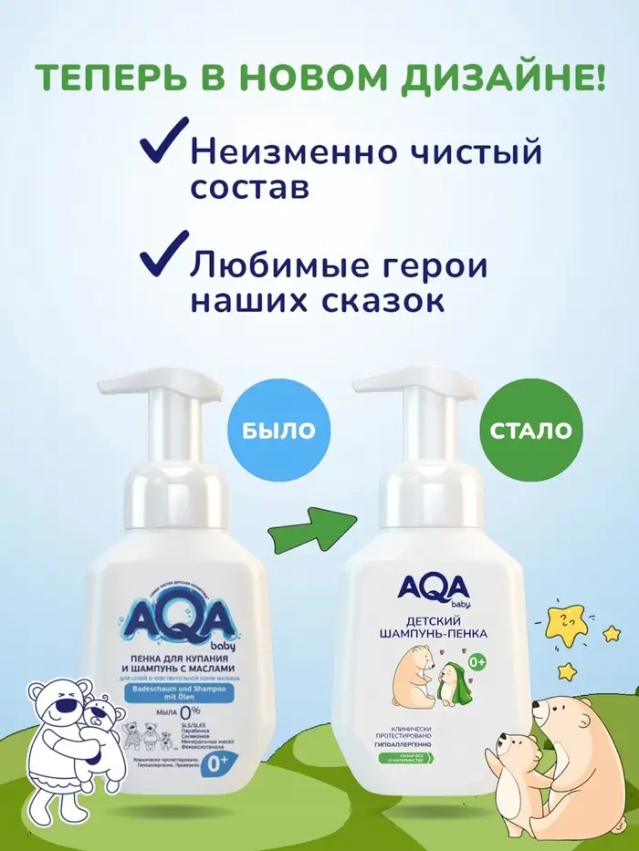 Пенка для купания и шампунь AQA baby с маслами для сухой и чувствительной кожи малыша, 250 мл