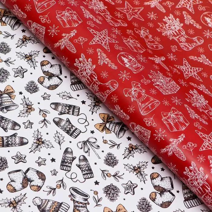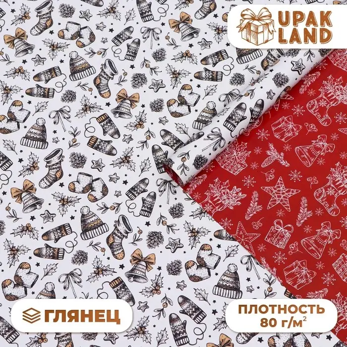 Бумага упаковочная глянцевая, двусторонняя "Новогоднее настроение", 50 х 70 см