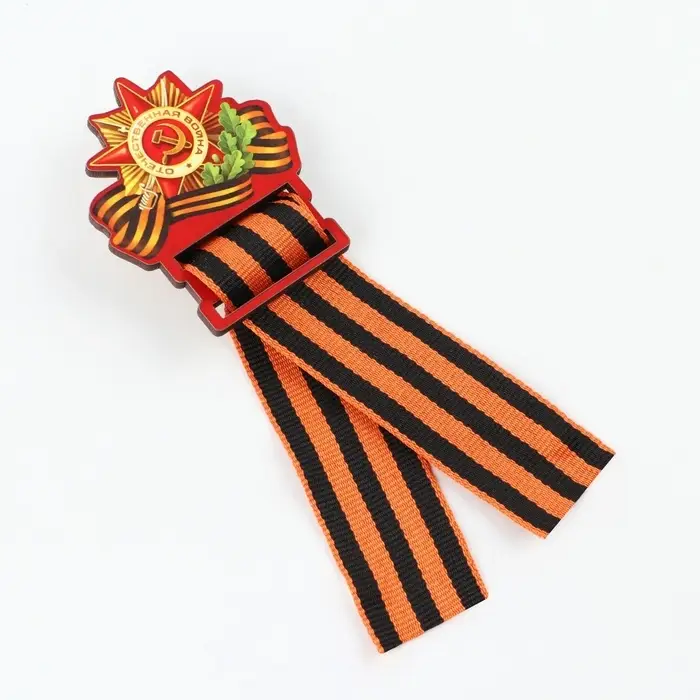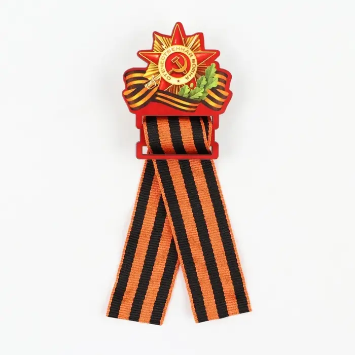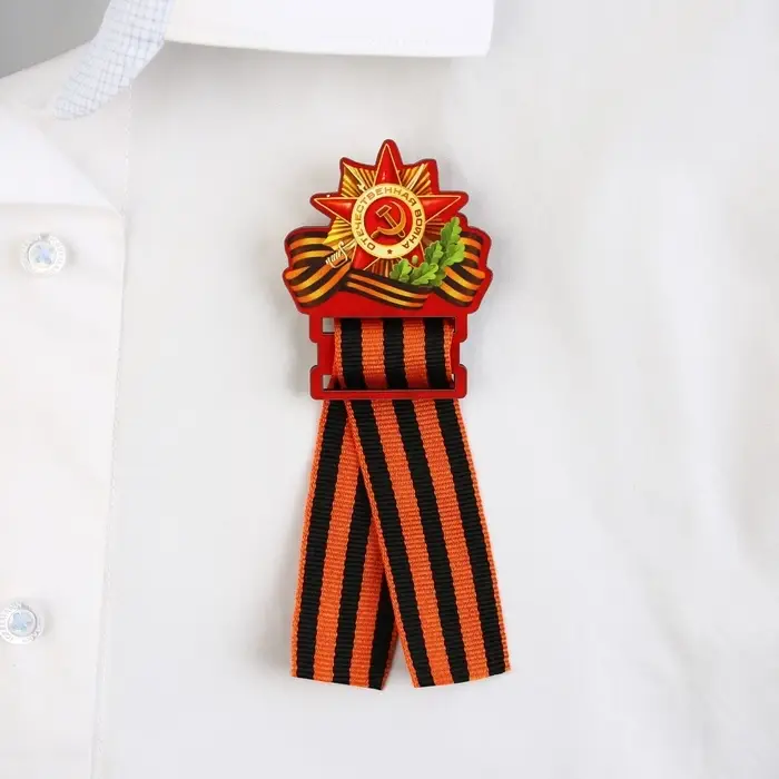 Значок на 9 мая с георгиевской лентой выполнена из очень качественного, плотного материала. Все детали на Георгиевской ленте выполнены аккуратно, смотрятся потрясающе. В период Великой Отечественной войны полоски на ленте воспринимали как цвета пороха и огня. Но во все времена этот символ ассоциировался с мужеством, героизмом и победой. Каждый год 9 мая мы крепим Георгиевские ленточки, чтобы проявить уважение к воинам и показать, что память об их подвиге жива. Носите Георгиевскую ленту всей семьей на праздничные шествия и мероприятия в честь 9 Мая.