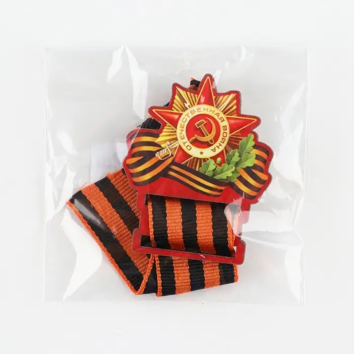 Значок деревянный с георгиевской лентой на 9 мая «Орден», 4.5×6.3 см