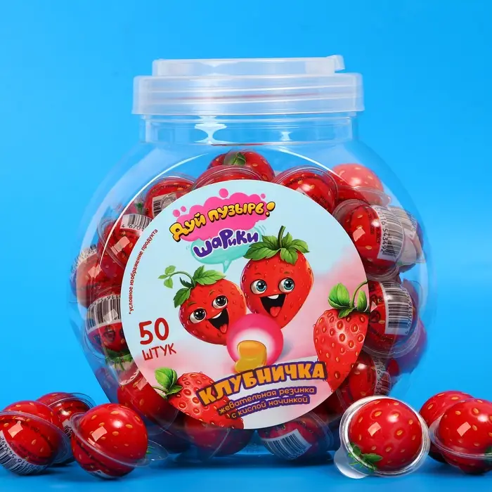 Жевательная резинка с кислой начинкой "Дуй пузырь!" — это яркая жвачка, которое подарит незабываемые эмоции и радость каждому любителю сладостей! Эта жевательная резинка с оригинальным дизайном в виде клубники приведет в восторг как детей, так и взрослых, добавляя в каждый момент немного волшебства и веселья.