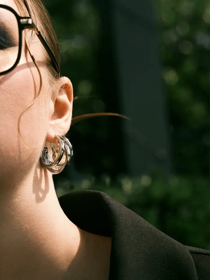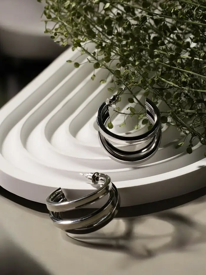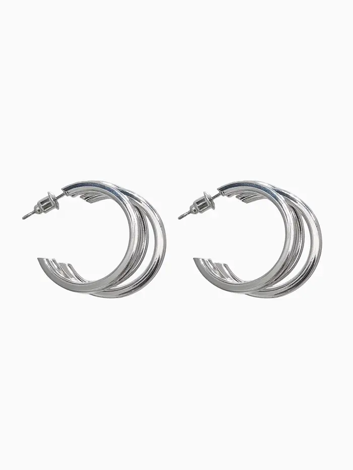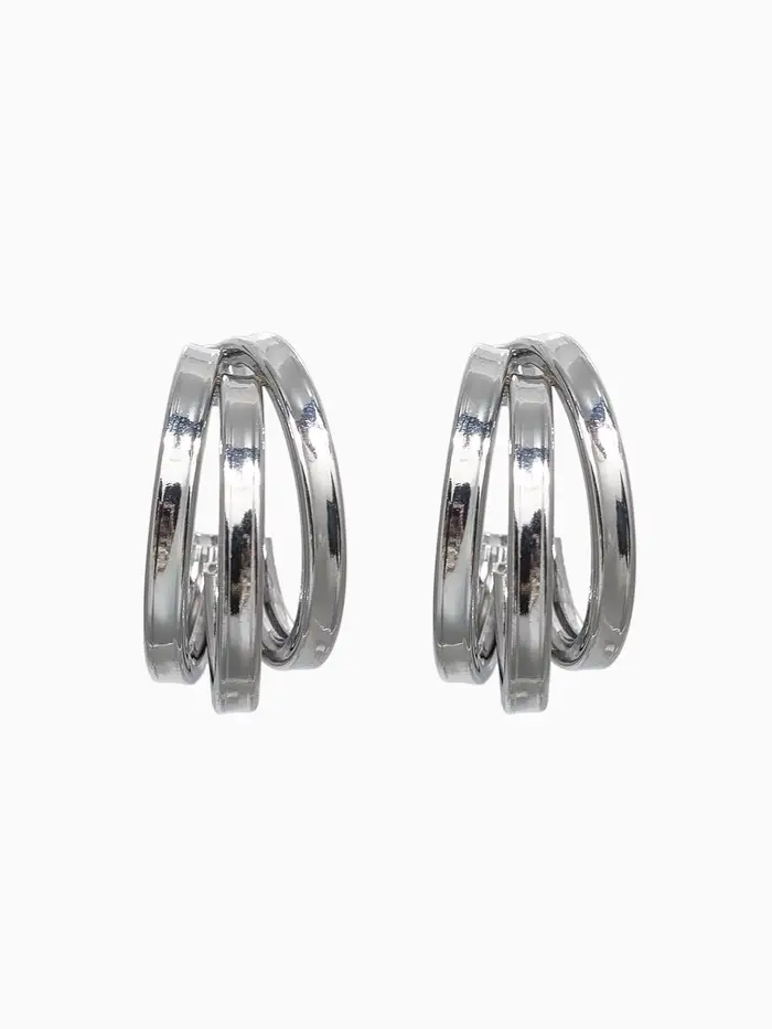 Серьги металл "Тринити" широкие, тренд, цвет серебро