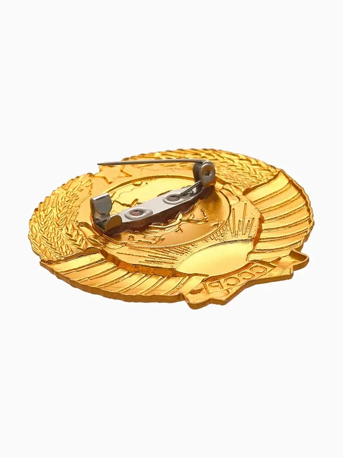 Значок "Герб СССР" серп и молот, красно-голубой в золоте