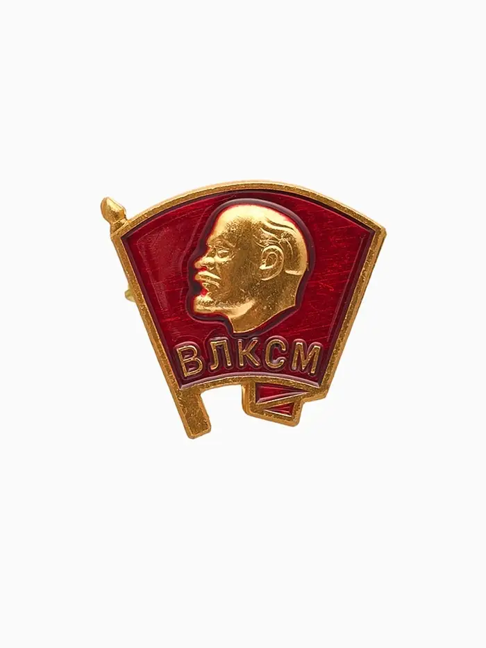 Значок "ВЛКСМ" комсомольский, красный в золоте