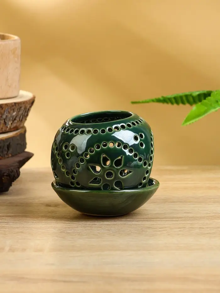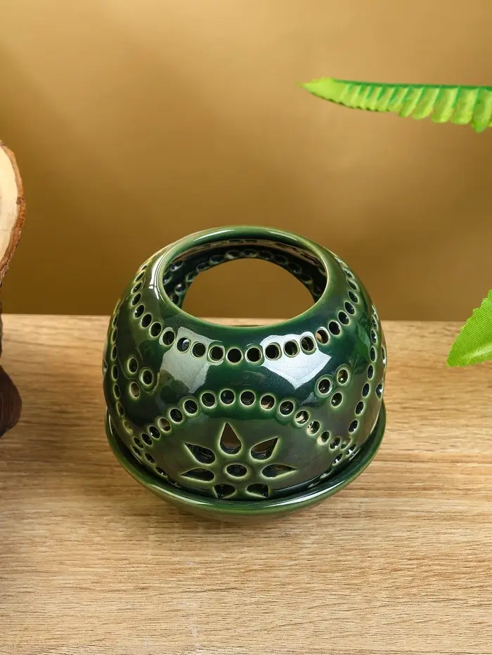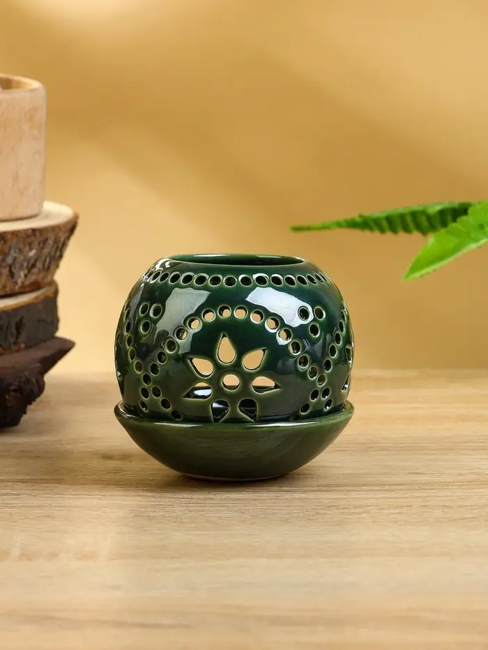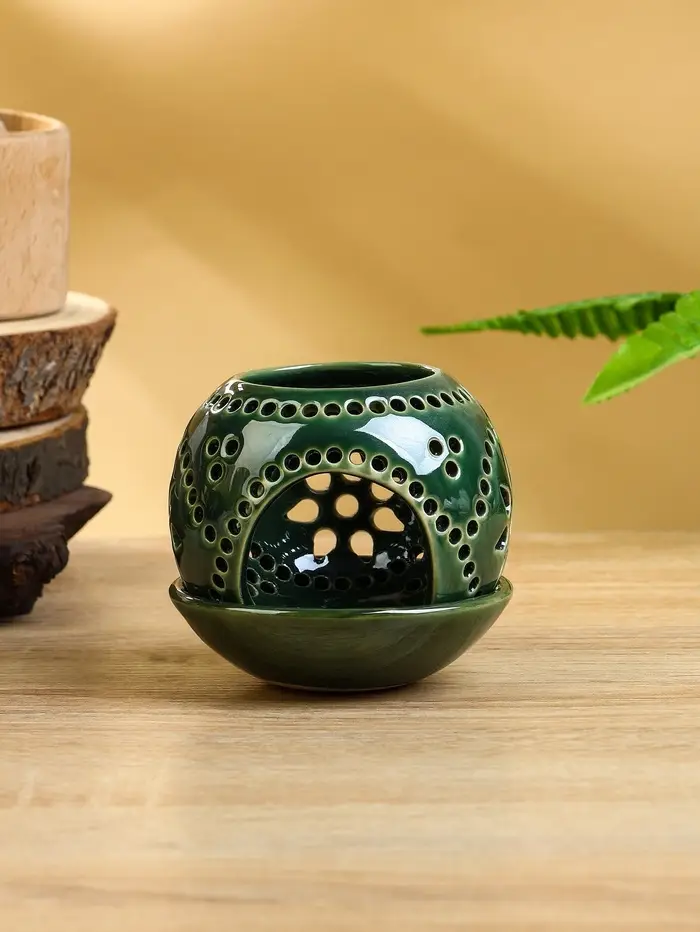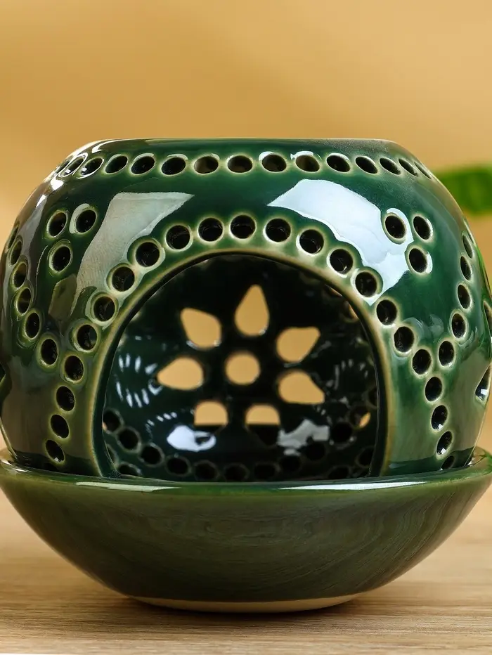 Аромалампа "Магнолия" керамика, цв. зелёный, 10х10х9 см