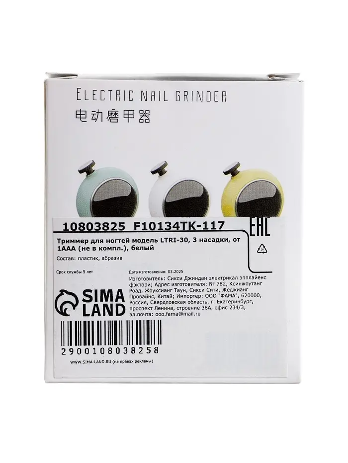 Триммер для ногтей LTRI-30, 3 насадки, от 1 ААА (не в комплекте), белая