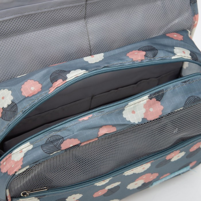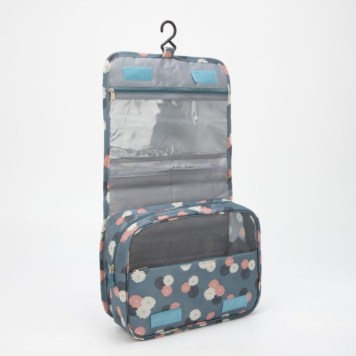 Косметичка-несессер на липучках, с крючком, цвет серый