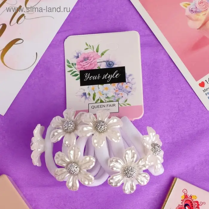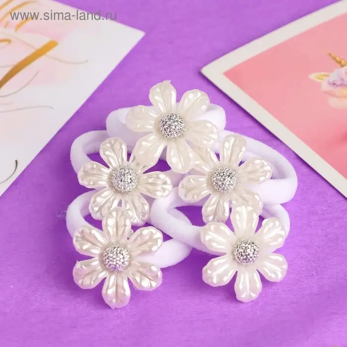 Резинка для волос "Беляночка" (набор 6 шт) ромашка
