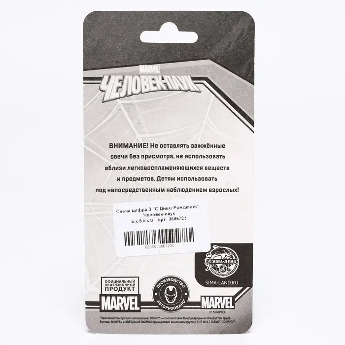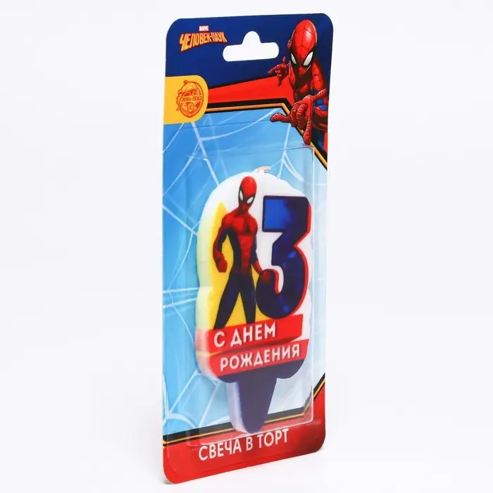 Свеча для торта "С Днем Рождения", цифра 3, Человек-паук