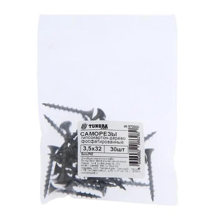 Саморезы гипсокартон-дерево ТУНДРА krep 3.5×32 мм, фосфатированные, 30 шт.